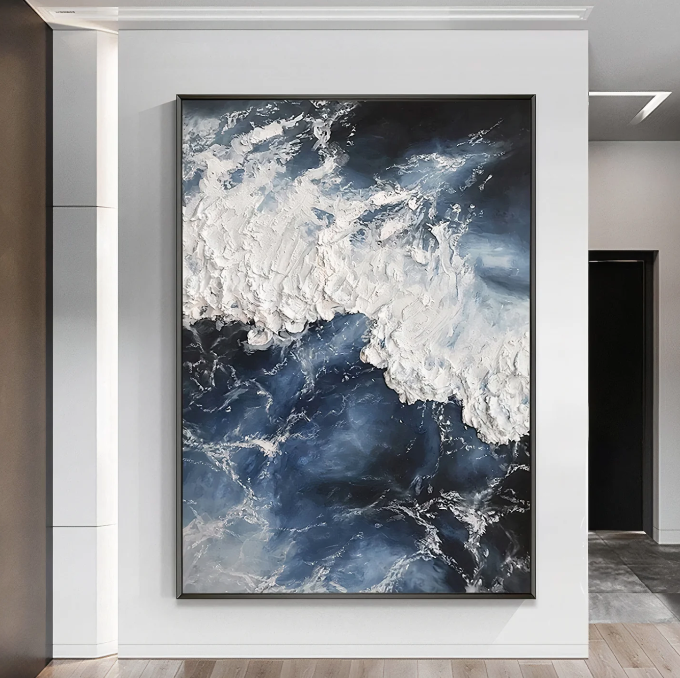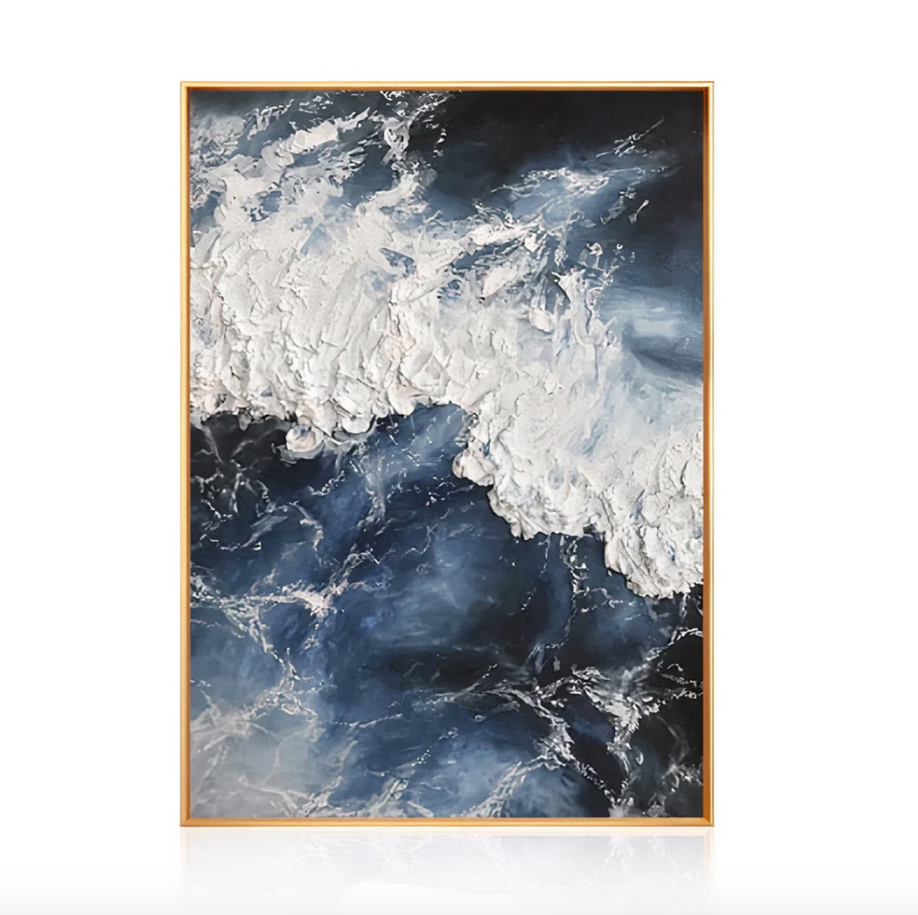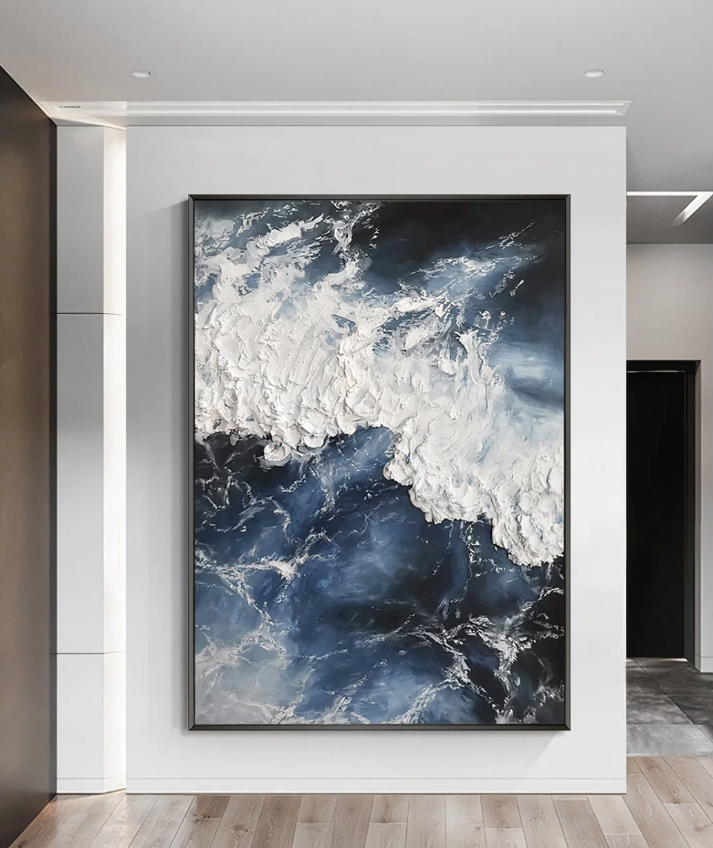 Bring a touch of the ocean's beauty into your home with this luxurious, one-of-a-kind Moana Painting. Handcrafted with a texturized splash effect in striking blue hues and white accents, this stylish artwork is sure to bring sophistication to any space. Inspired by the breath taking power of the ocean, this timeless piece is the perfect addition to any modern or classic interior.