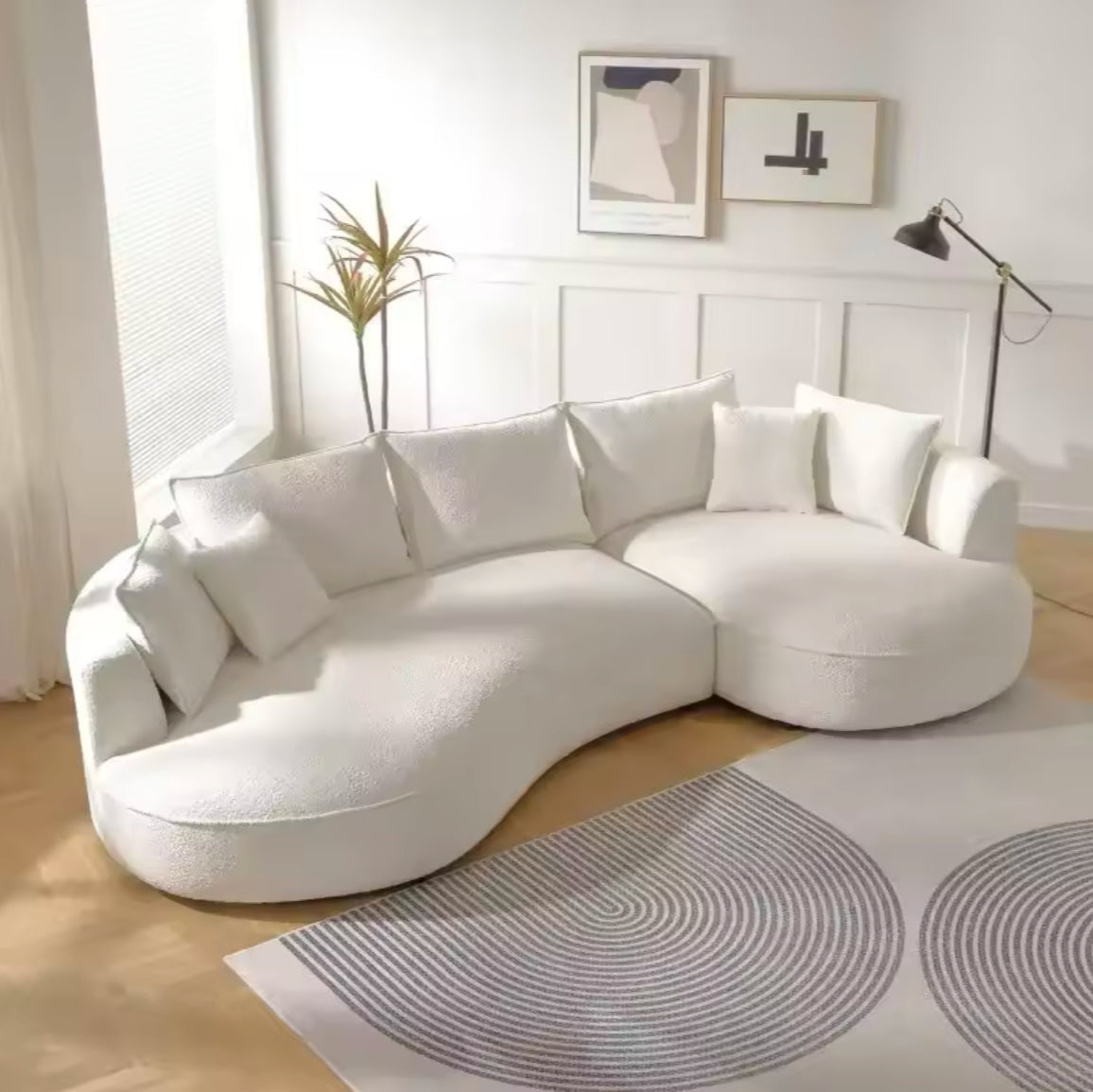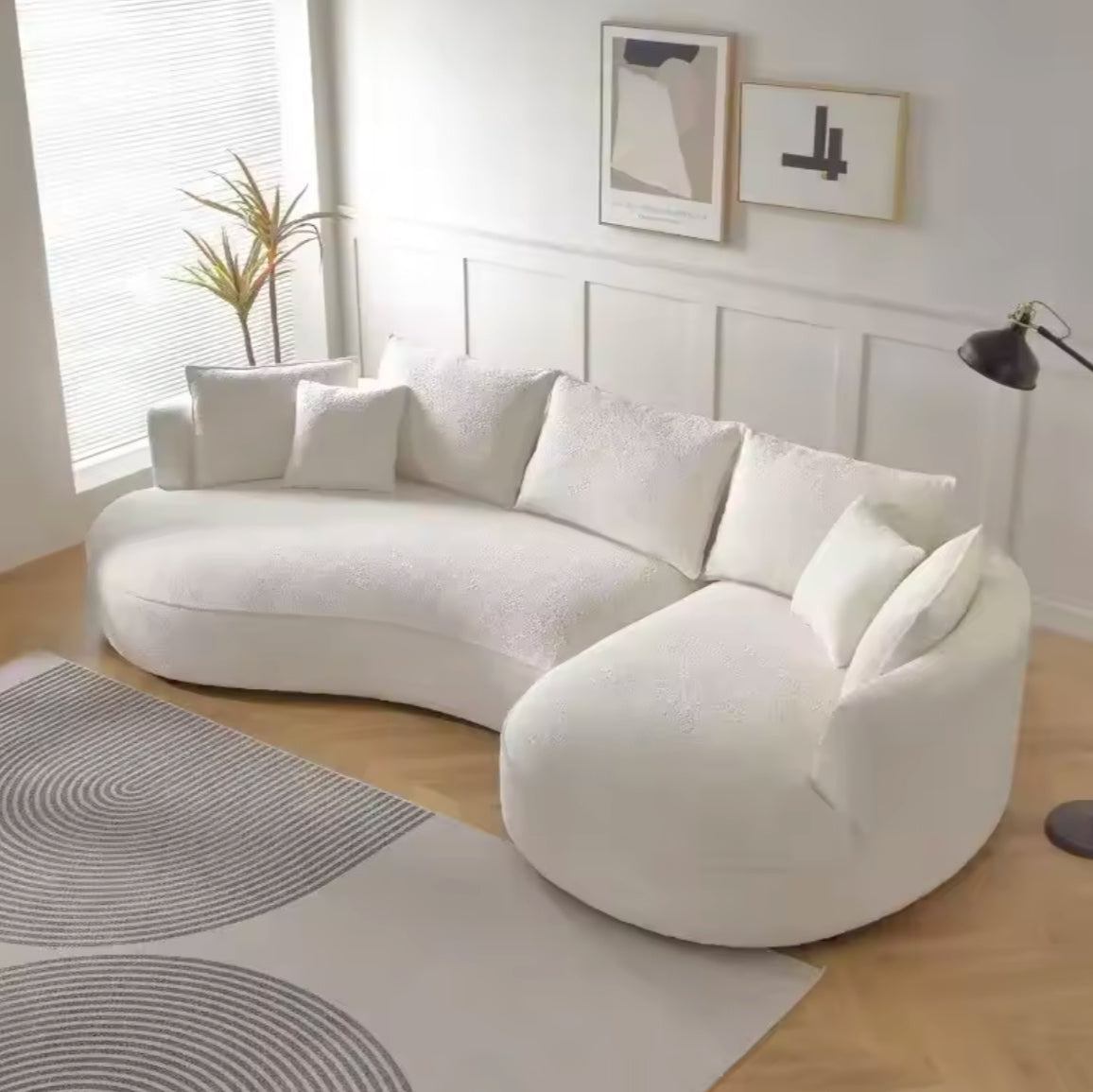 Experience true luxury and sophistication with the Jessica Sofa. Its sleek, curved design is complemented by plush pillows that offer ultimate comfort. This sofa is expertly crafted in luxurious bouclè fabric, elevating the elegance of any living space. Elevate your style and relaxation with the Jessica Sofa.